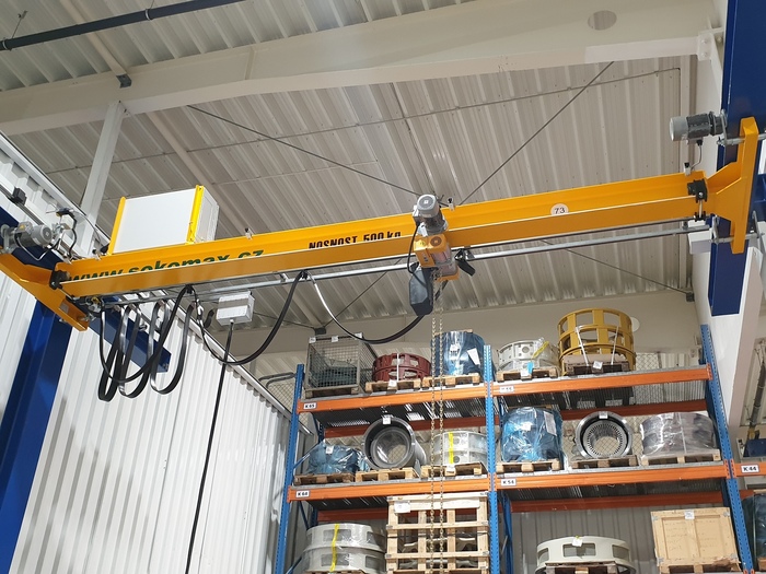 Úvod > Reference > Mostové jeřáby > Pdvěsná jeř.dráha + jeřábek 500kg areál Olomouc 2020