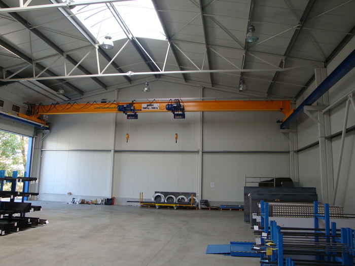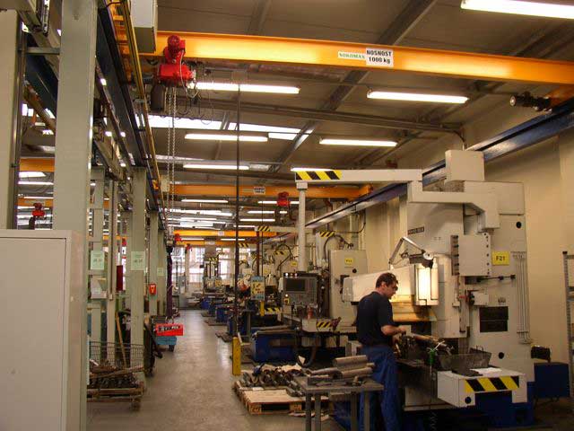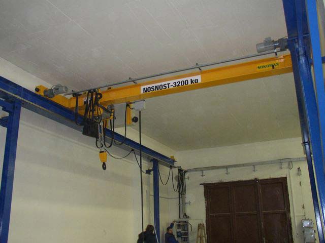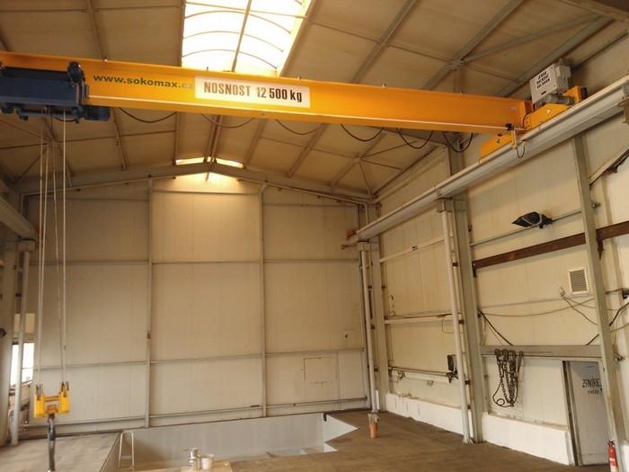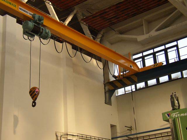 Naše firma Sokomax s.r.o. vyrábí jednonosníkové mostové jeřáby o nosnosti do 16tun a o rozpětí do 19m. Nosník mostového jeřábu je tvořen válcovaným profilem HEA nebo HEB. Pojezdové jednotky vlastní výroby jsou osazeny dvoustupňovou elekropřevodovkou s možností ručního odbrždění a motorem s brzdou od firmy NORD. Vždy je používán frekvenční měnič kmitočtu pro plynulý rozjezd a dojezd jeřábového mostu s možností individuálně nastavit dle místních podmínek rychlost prvního a druhého stupně pojezdu.